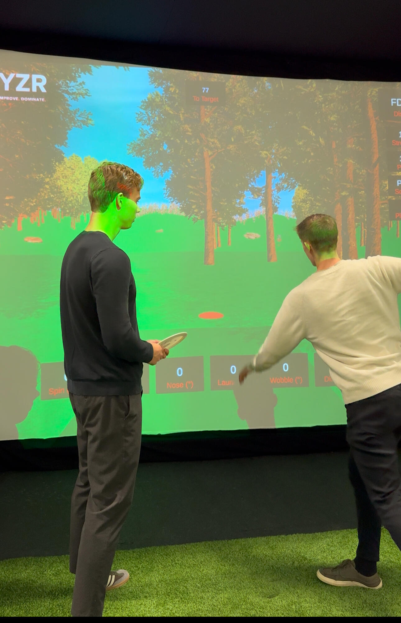 Hos oss kan du spela Discgolf på två moderna HYZR discgolfsimulatorer, kända för sin höga precision, realistiska kastdata och autentiska banupplevelse. Utvecklade för att passa alla typer av spelare – från nybörjare till erfarna tävlingsspelare.